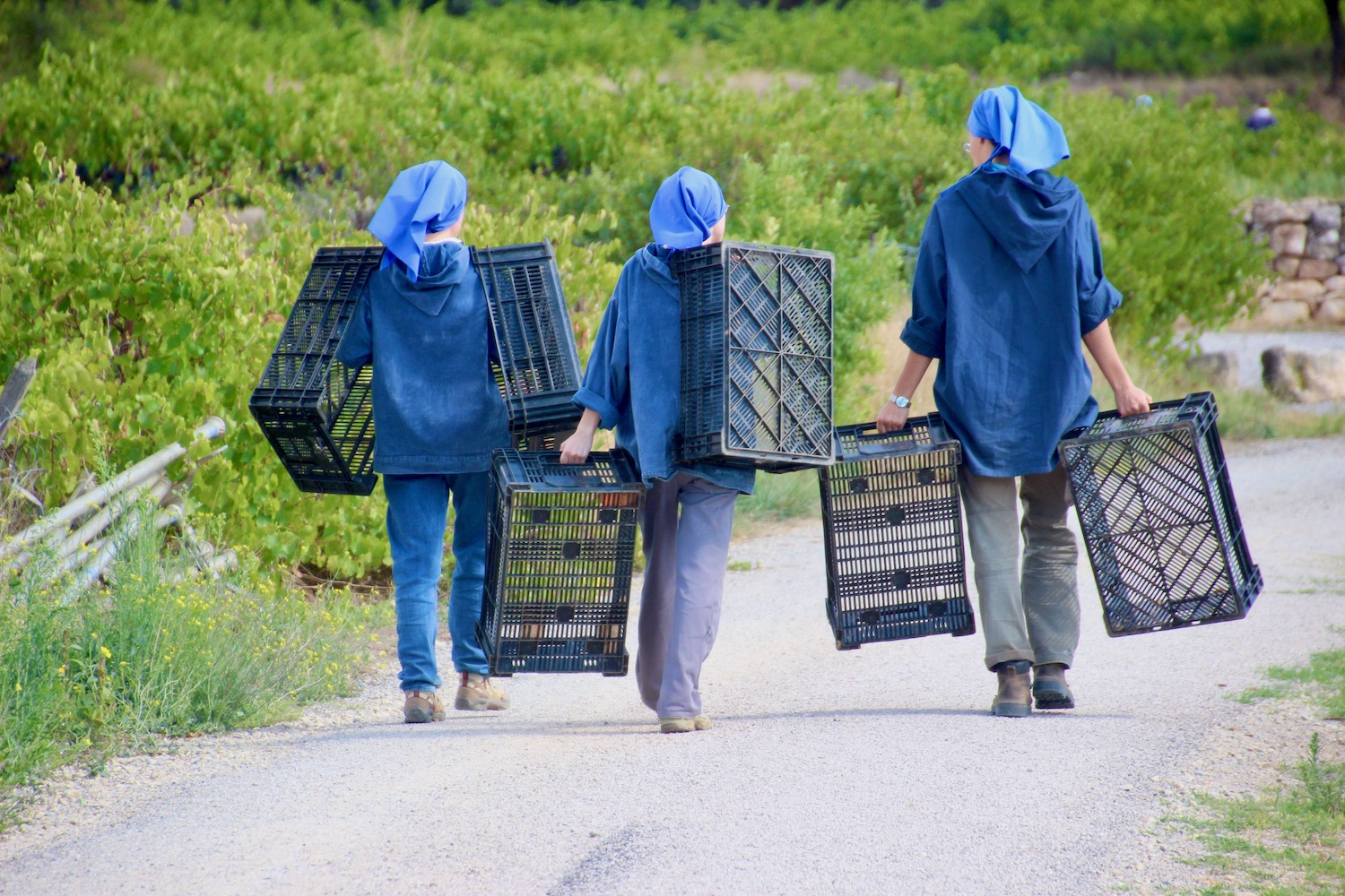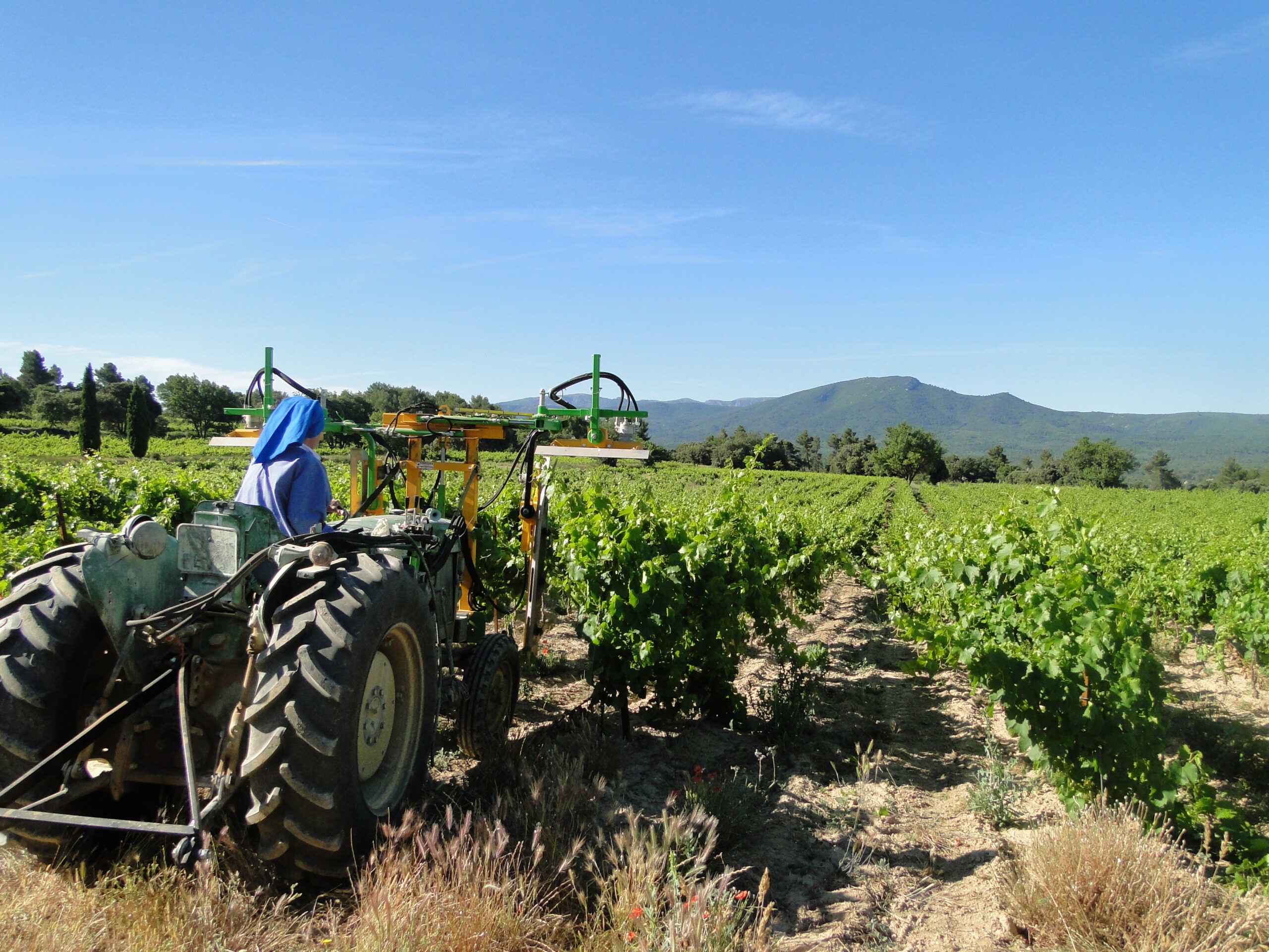 En s’installant sur le plateau en 1967, les moniales fondatrices découvrent des vignes qu’elles s’emploient à cultiver avec l’aide des viticulteurs des alentours. Les moniales en assurent entièrement la culture (travail du sol, taille, ébourgeonnage, effeuillage…) jusqu’aux vendanges effectuées à la main – sauf pour la cuvée de rosée, en raison du délai très court exigé entre la récolte et le pressoir ! Le raisin est ensuite confié à la coopérative des Quatre-Tours qui le vinifie. Afin de préserver l’environnement et de respecter la nature, toutes nos plantations, sont cultivés naturellement au soleil de Provence !